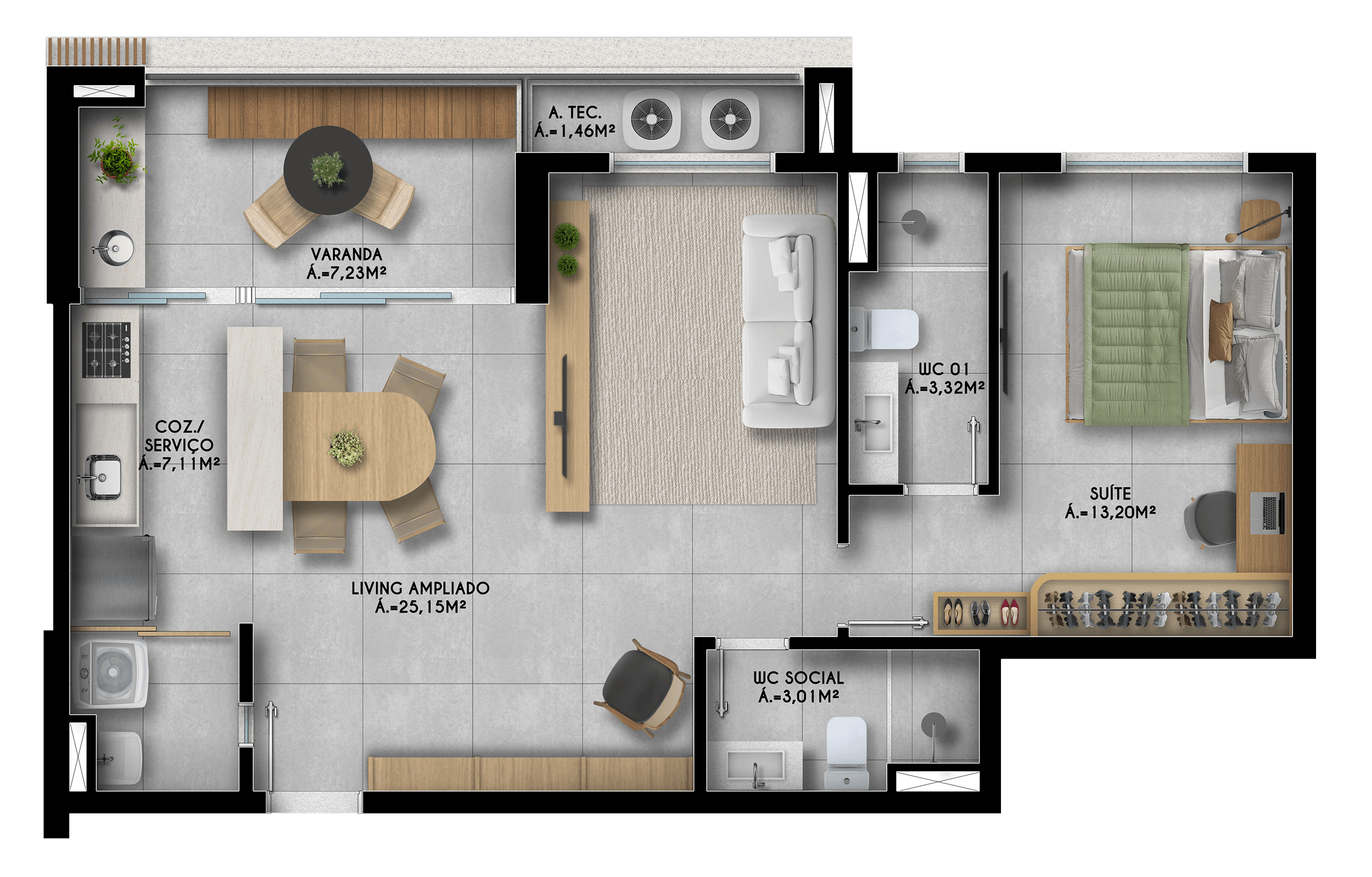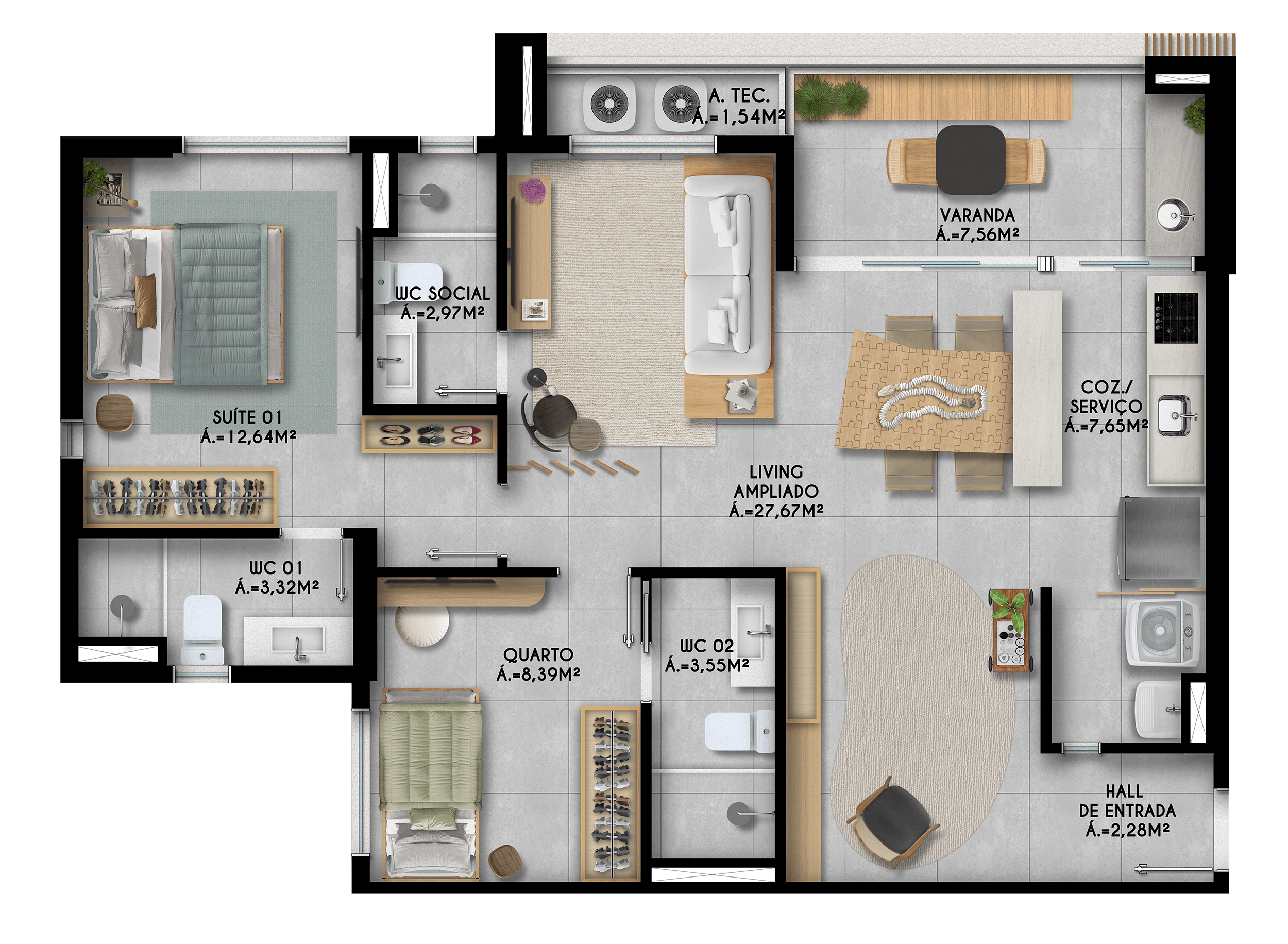 Imagine morar em um lugar que atende a todas as necessidades da sua rotina. O Jardins é uma das regiões mais completas da cidade, permitindo que você tenha a poucos passos, supermercados, escolas, farmácias, o Parque da Sementeira e, o principal, o Shopping Jardins. De um lado, o dia a dia ativo e, do outro, o tempo que você precisa para desacelerar. É dentro de casa que o conforto ganha um significado especial, onde os momentos em família e consigo mesmo são mais que necessários. Bem aqui, no coração do bairro Jardins, é onde você vai morar. Viva a cidade. Viva a vida. Città Jardins.