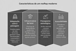 Seguindo essa tendência, projetos residenciais modernos incorporam o rooftop desde a concepção, garantindo que ele dialogue com o restante do empreendimento e com o entorno urbano.